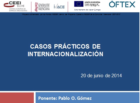 La exposición de la ponencia se realizó el 20 de junio de 2014 en CEEI Elche durante la jornada Como internacionalizar tu empresa