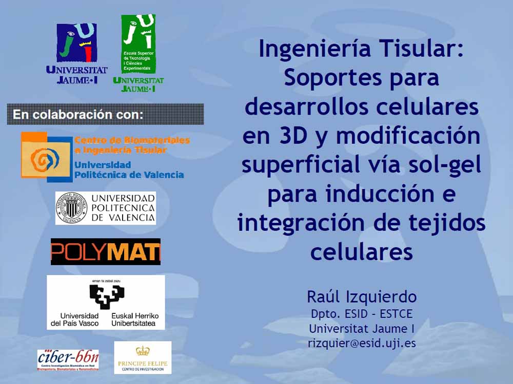 Ingeniería tisular: Soportes para desarrollos celulares en 3D y modificación superficial vía sol-gel para inducción e integración de tejidos celulares, por Raúl Izquierdo Universidad Jaume I